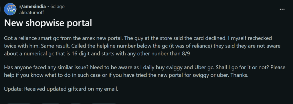 For years, Gyftr powered Amex’s voucher program. However, many users reported checkout failures during busy times, delayed voucher delivery, stock issues on sale days and a clunky, outdated interface.