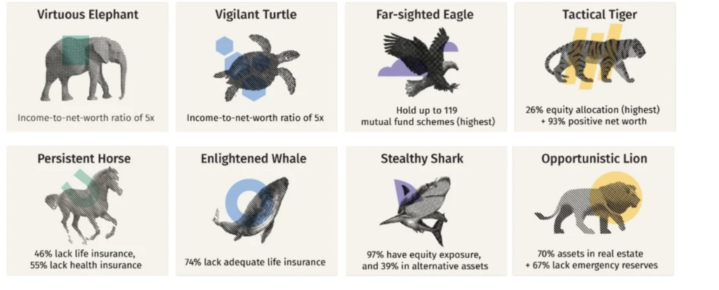 People are grouped into different “MoneySign®” (like animal archetypes) that represent different financial temperaments and attitudes.